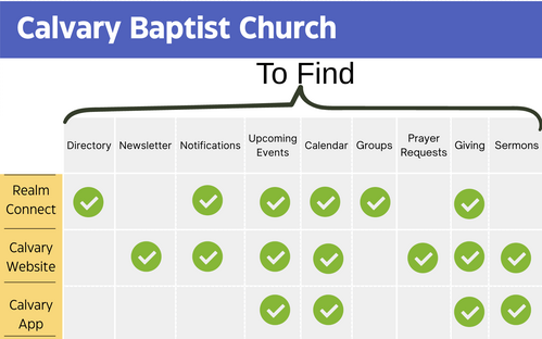Calvary has recently switched to a different messaging system that is connected to Realm. Please visit this website to subscribe to texts and emails for the updated newsletter and any other news! Thank you!